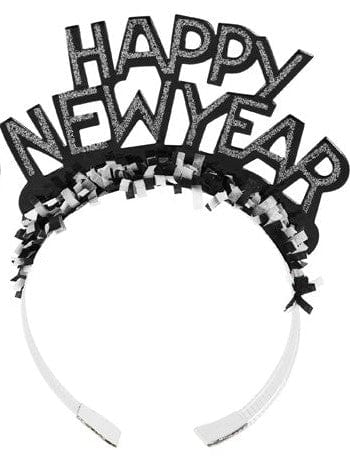 Áramóta kóróna "Happy New Year" - silfur og svört