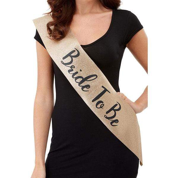 Gylltur glimmer "Bride to be" borði með svörtu letri