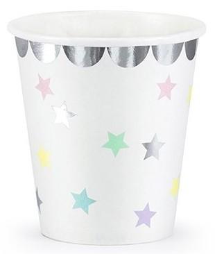 Ljósblá glös með silfur stjörnum- 6 stk í pakka
