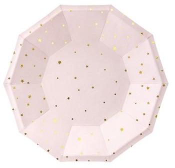 Ljósbleikir pappadiskar með gylltum stjörnum 6 stk