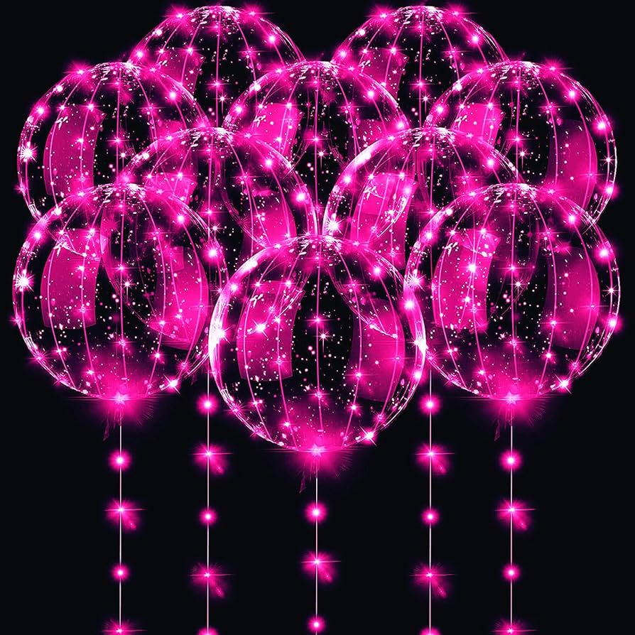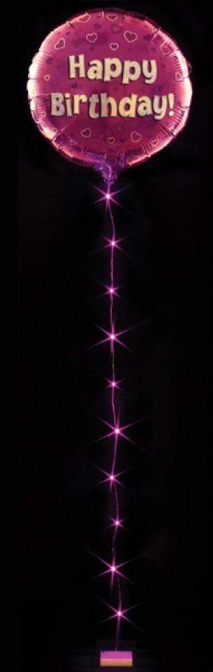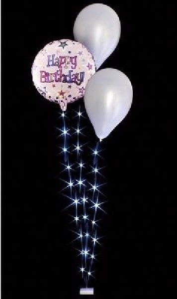 Fjólubleikur led vöndur með 3 seríum, 3 latex blöðrum og helíum