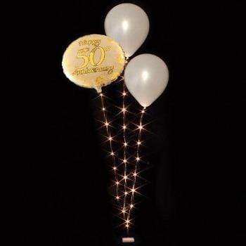 Hvítur led vöndur með 3 köldum seríum, 3 latex blöðrum og helíum