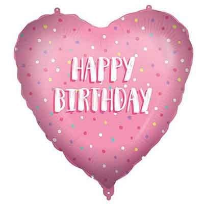 Bleik “Happy Birthday” álblaðra með doppum 46cm