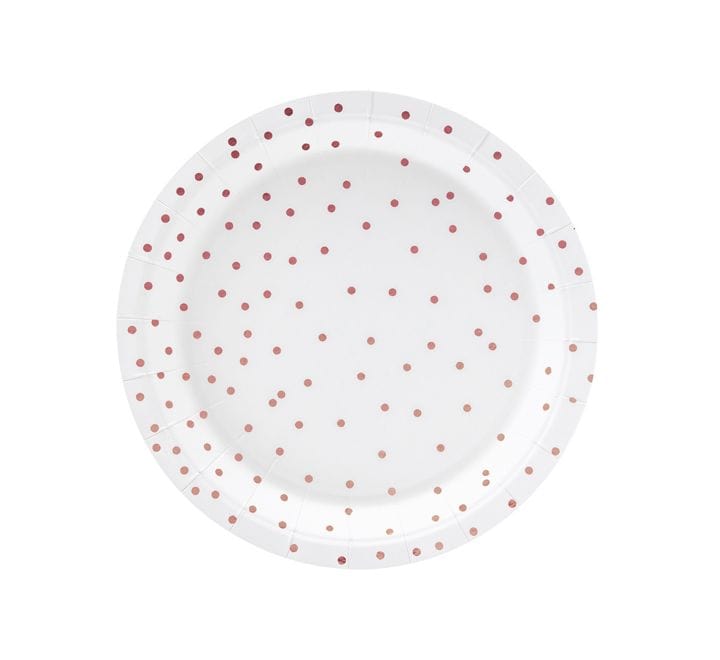 Hvítir pappadiskar með rósagylltum doppum 6 stk