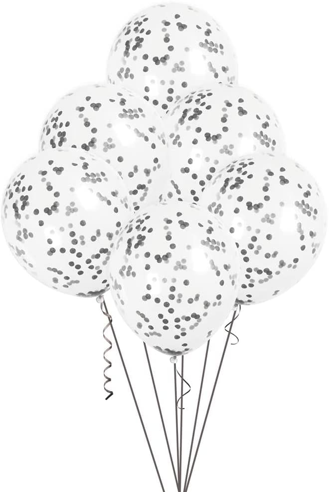 Glærar blöðrur með svörtu confetti - 6stk í pakka 30cm