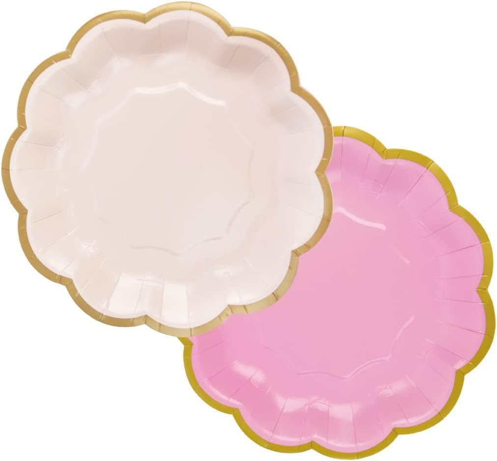Dökkbleikir og ljósbleikir pappa diskar með gylltri rönd- 18cm, 12stk í pakka