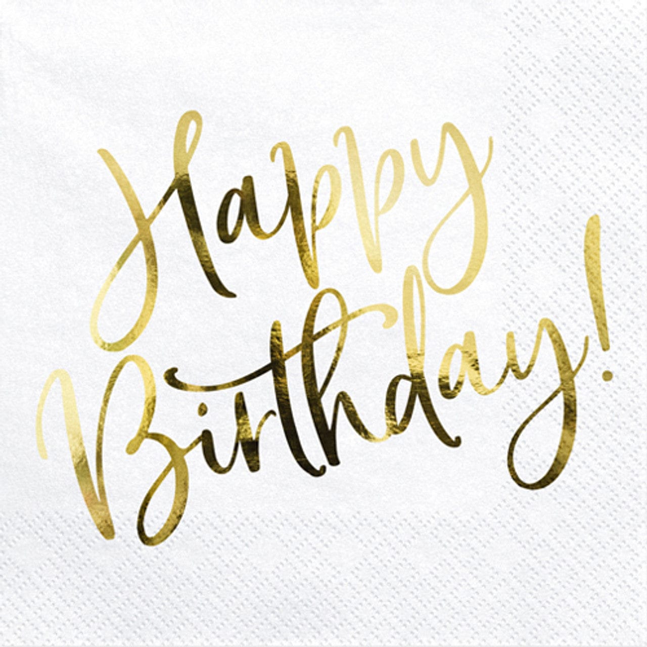 Hvítar “Happy Birthday” matarservíettur 10stk