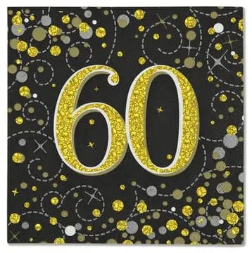 Svartar og gylltar 60 ára matarservíettur 16 stk
