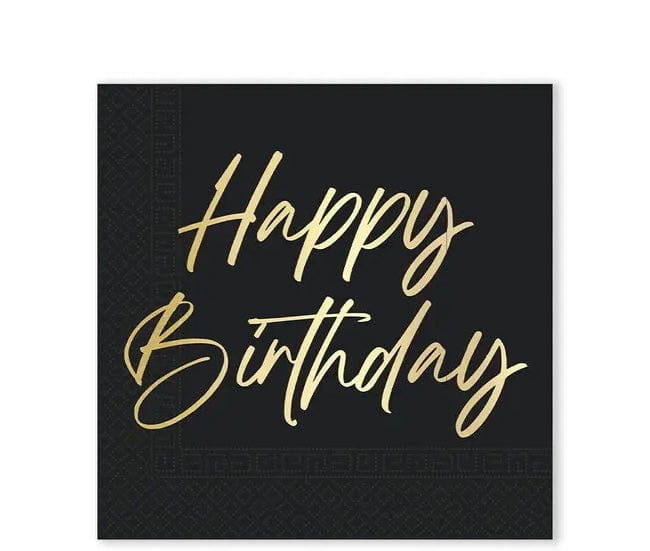 Svartar “Happy Birthday” matarservíettur - 20stk