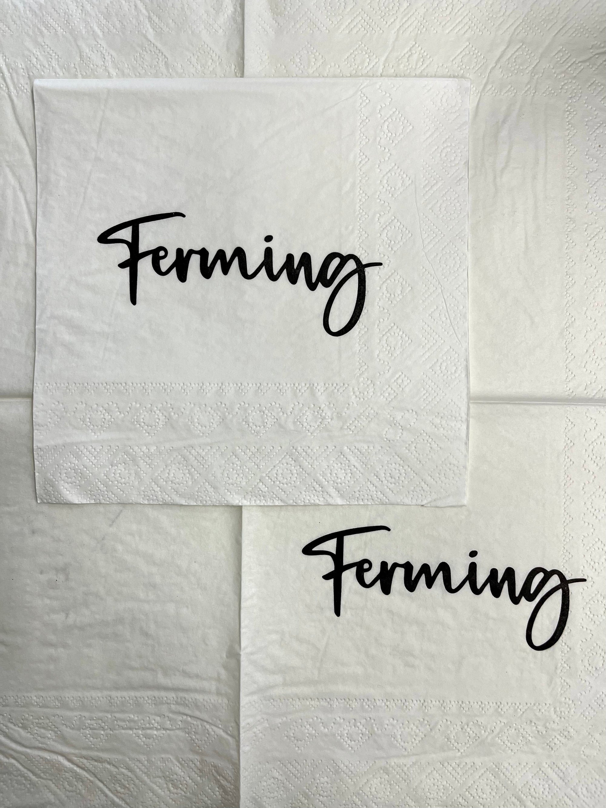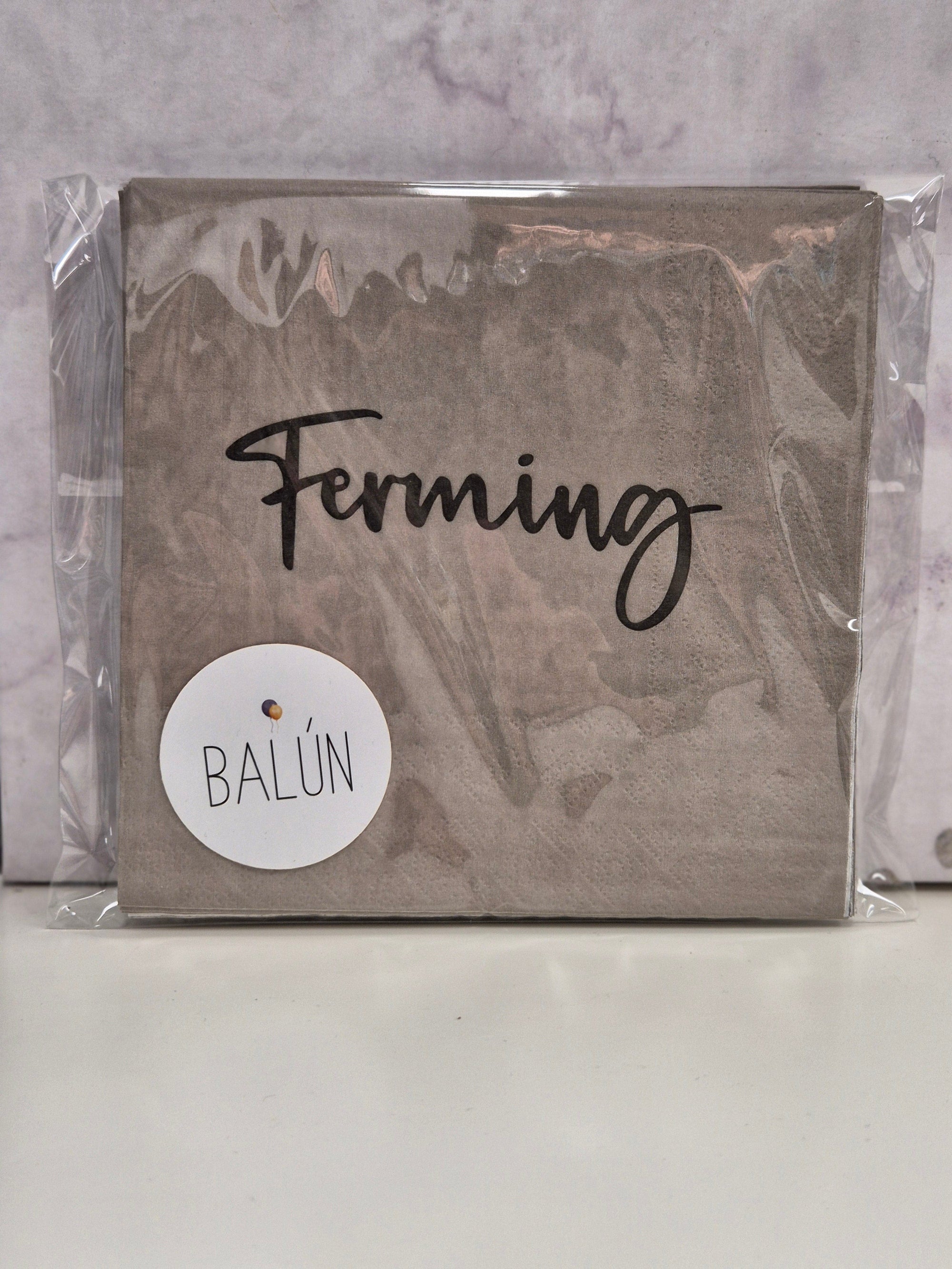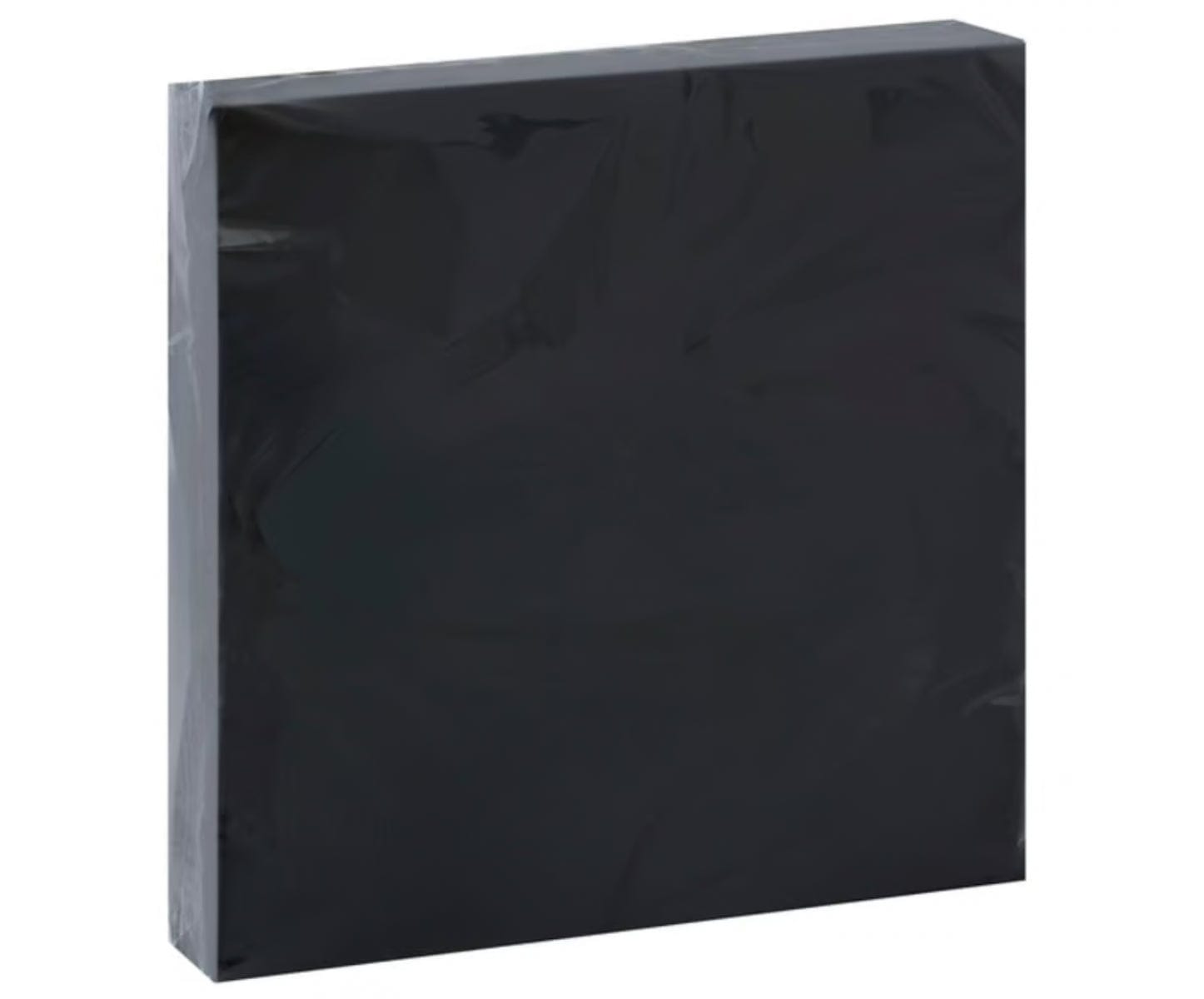 Svartar "Ferming" matarservíettur með silfur merkingu 16 stk
