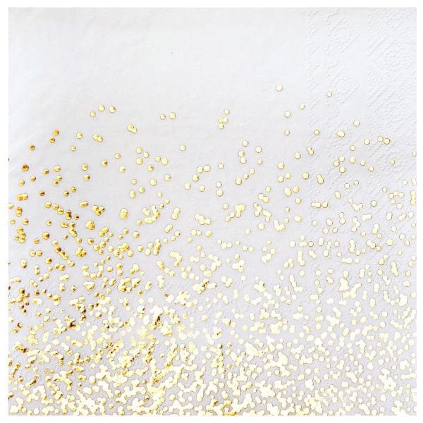 Hvítar "Stúdent" kökuservíettur með gylltri merkingu 20 stk