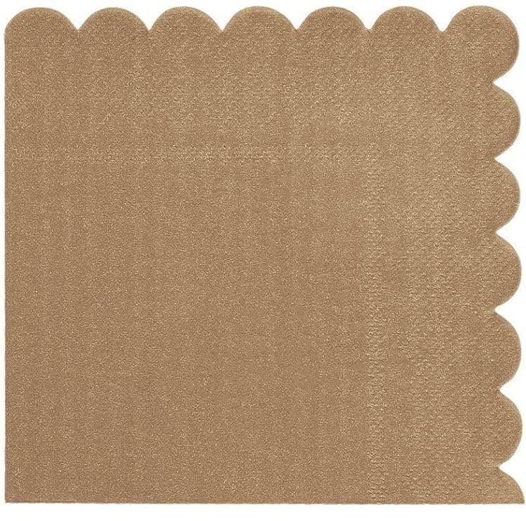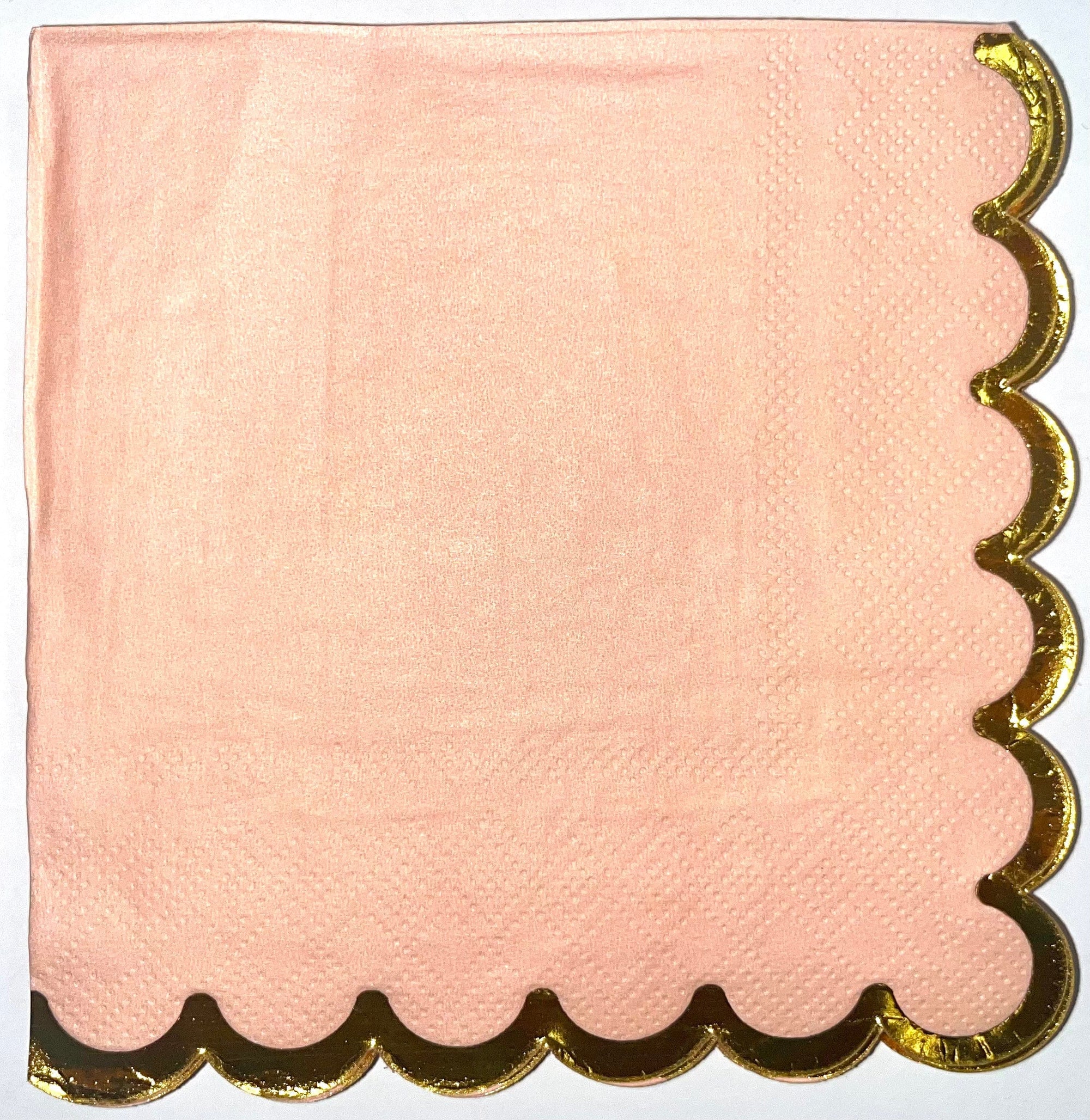Ferskjulitaðar kaffiservíettur með gylltri rönd 16 stk