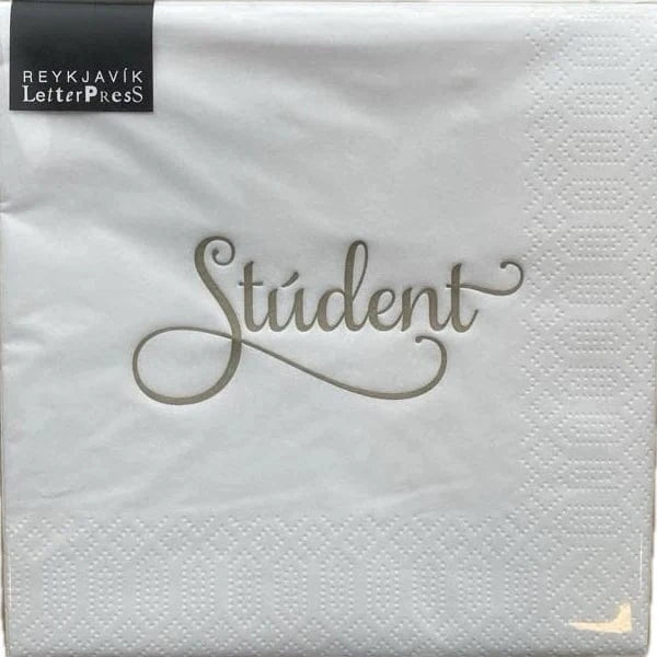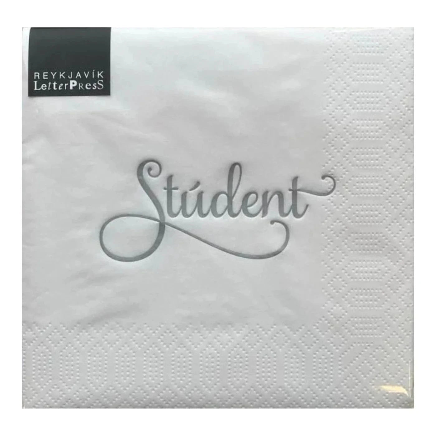 Hvítar "Stúdent" matarservíettur með silfur merkingu 20 stk