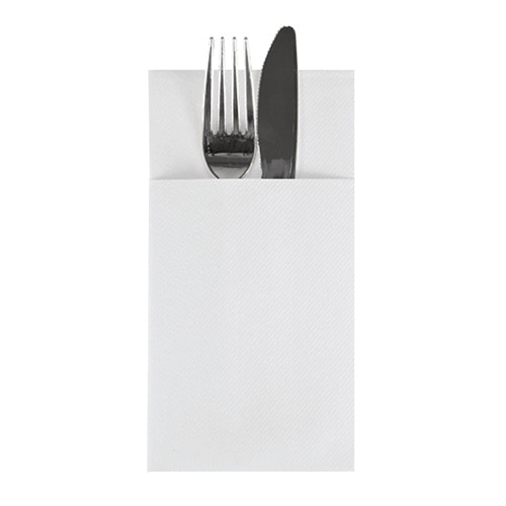 Hvítar servíettur með vasa fyrir hnífapör 12 stk