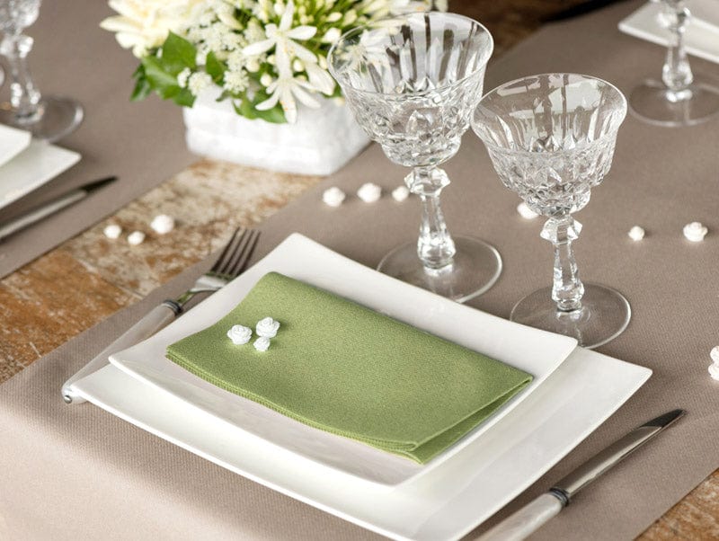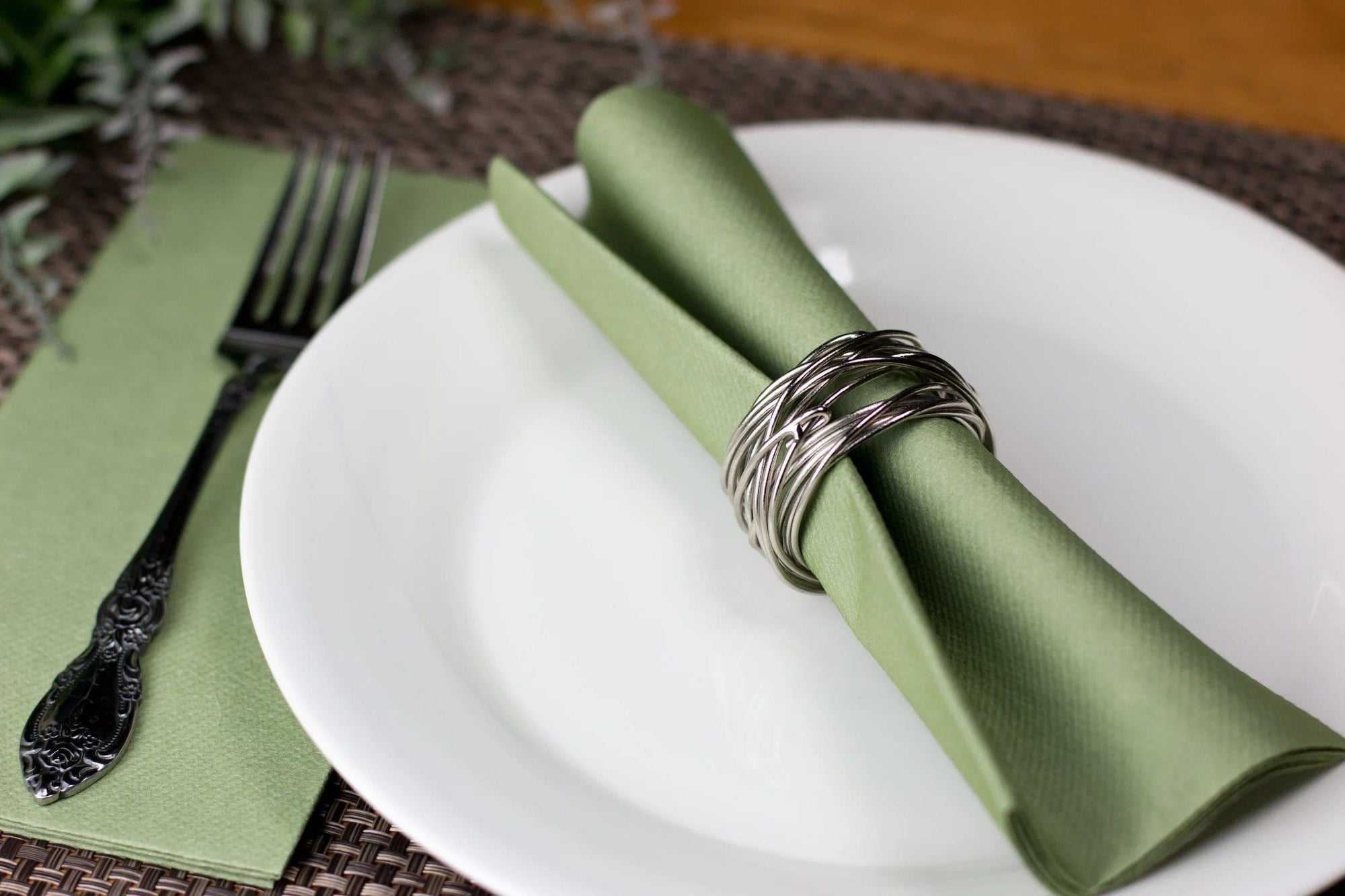 Ólífugrænar servíettur með vasa fyrir hnífapör 12 stk