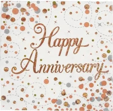 Rósagylltar “Happy Anniversary” matarservíettur 16 stk