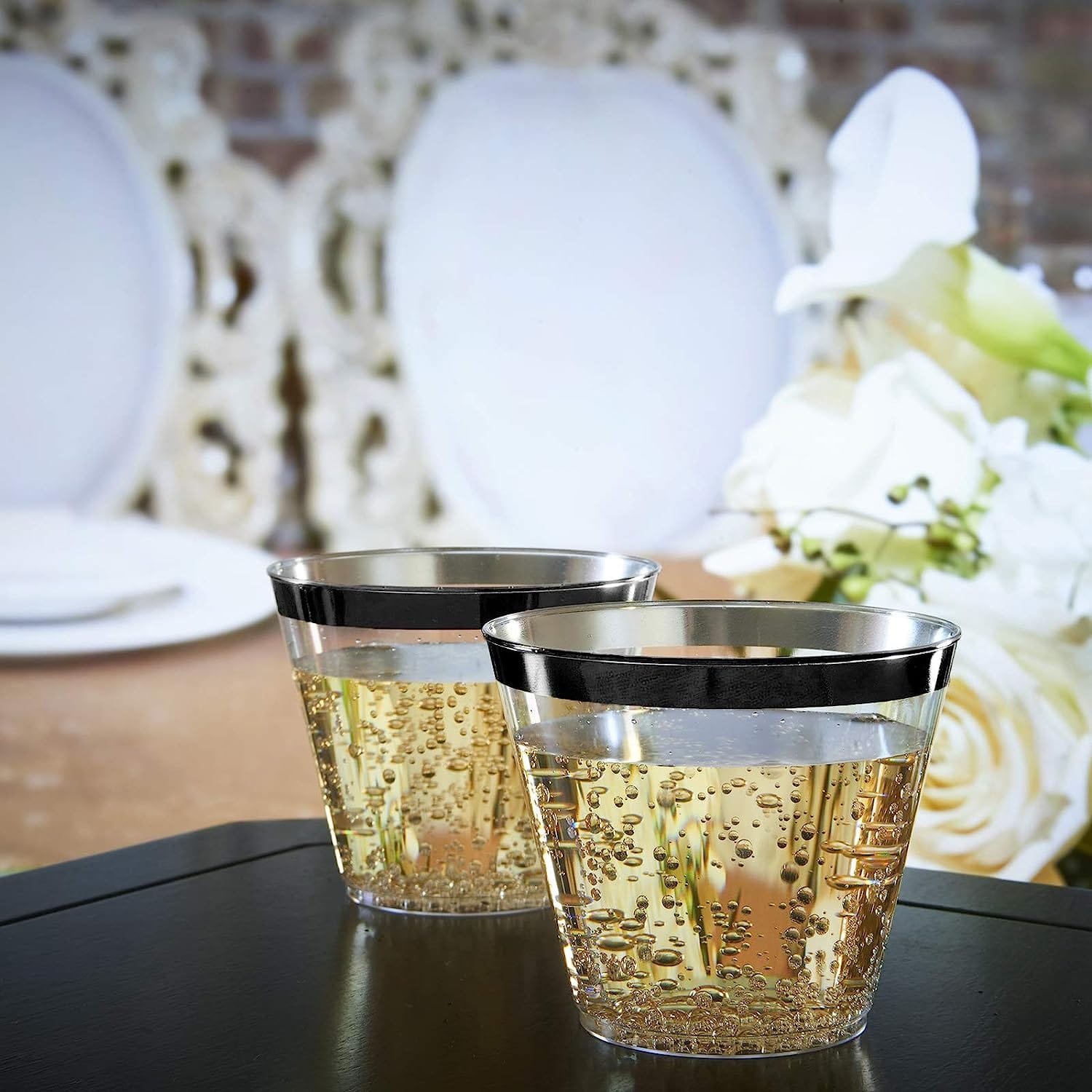 Svört og glær vínglös úr plasti (fjölnota) 10 stk