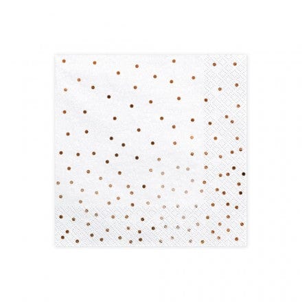 Hvítar matarservíettur með rósagylltum doppum - 20 stk