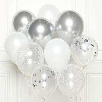 Silfur, hvítt og glært blöðru kit- 10x blöðrur
